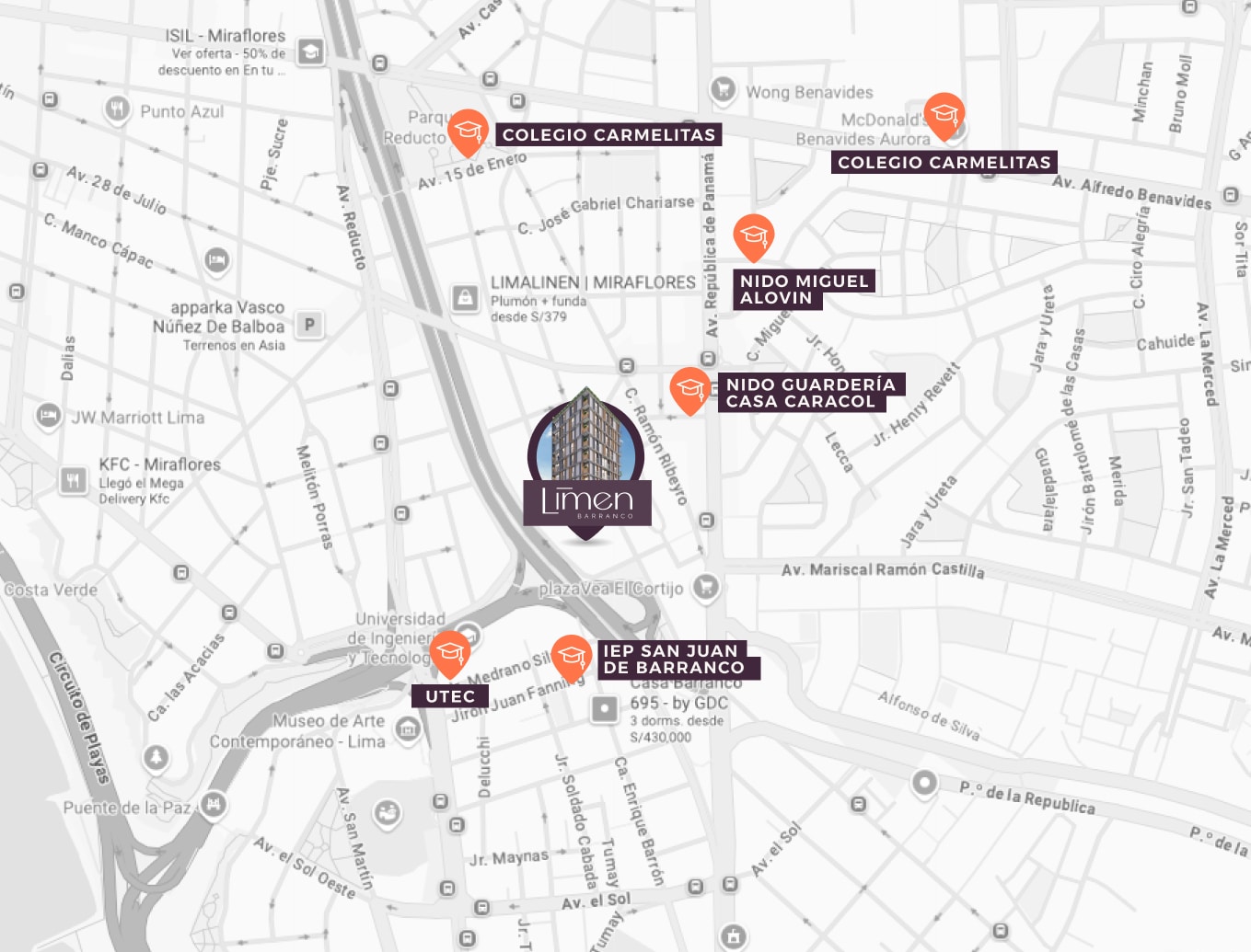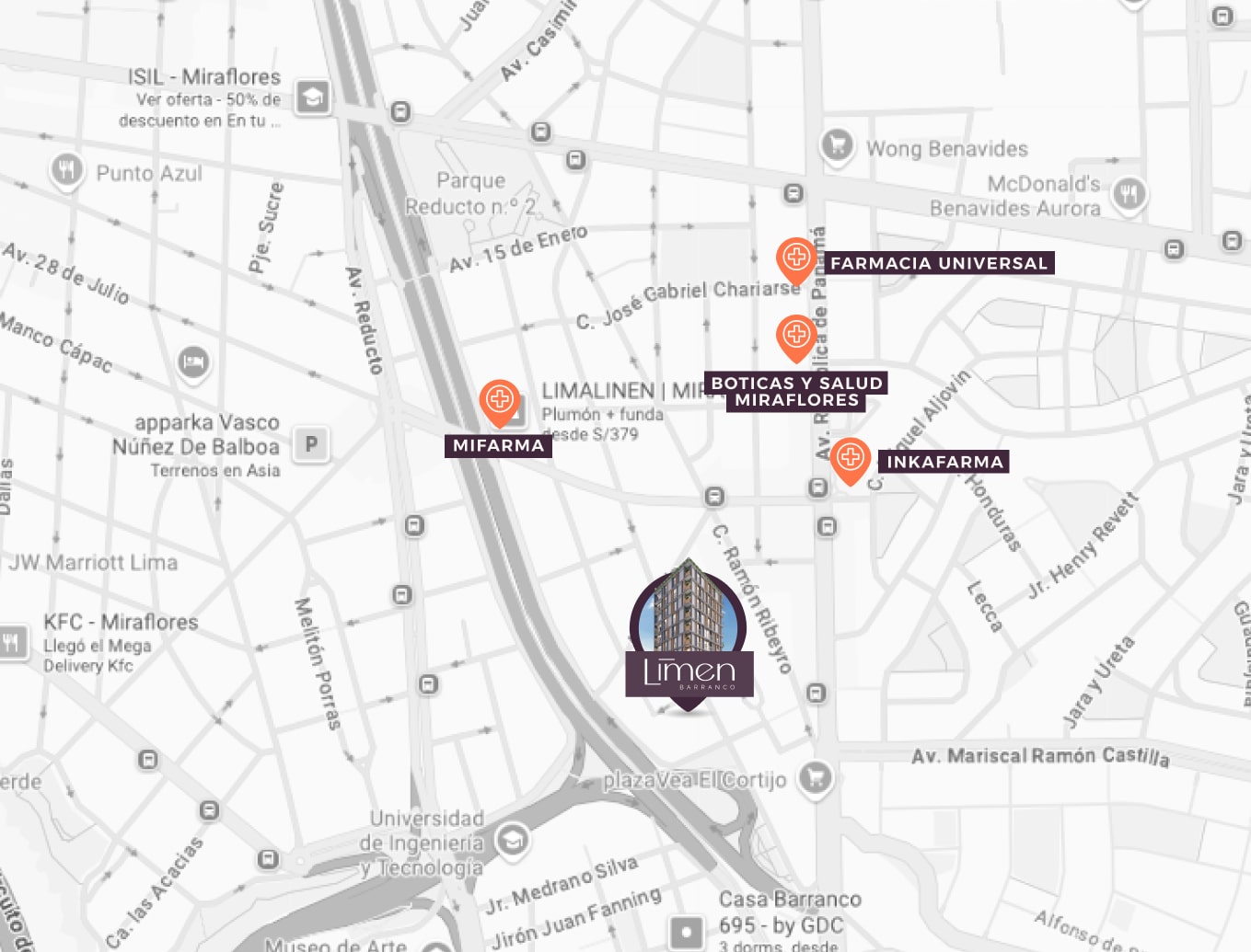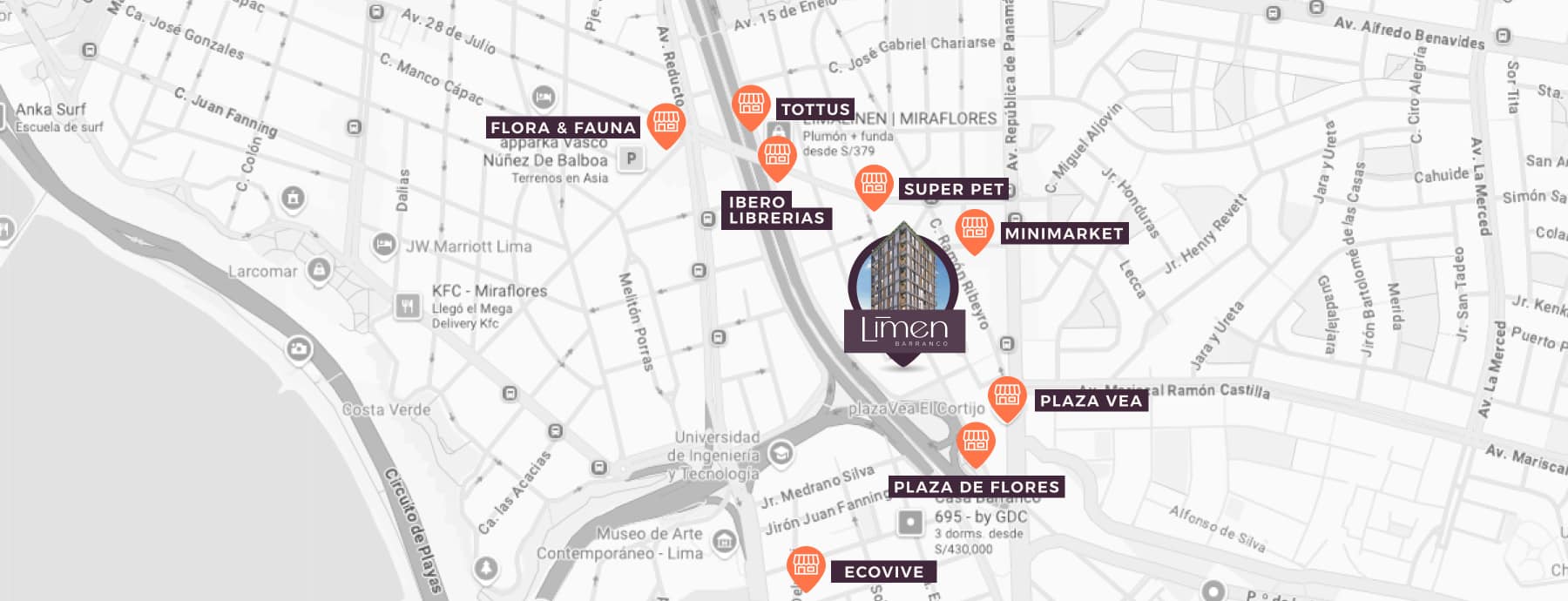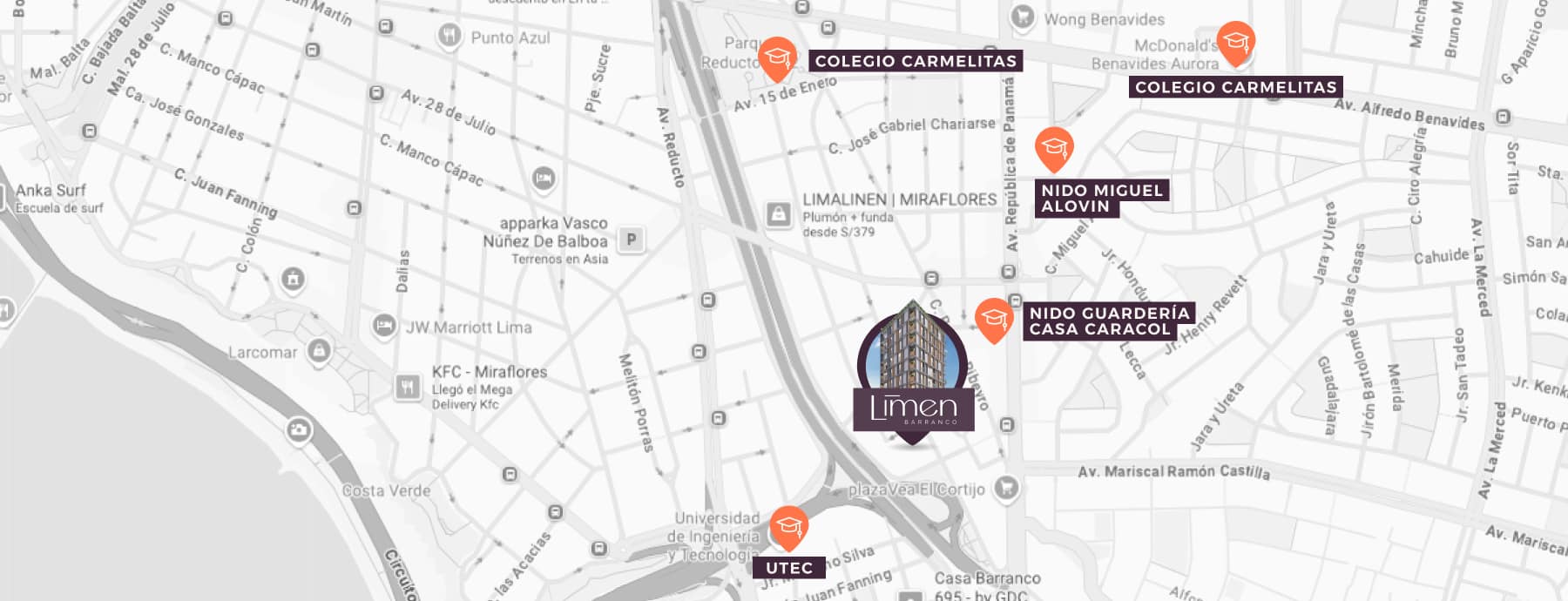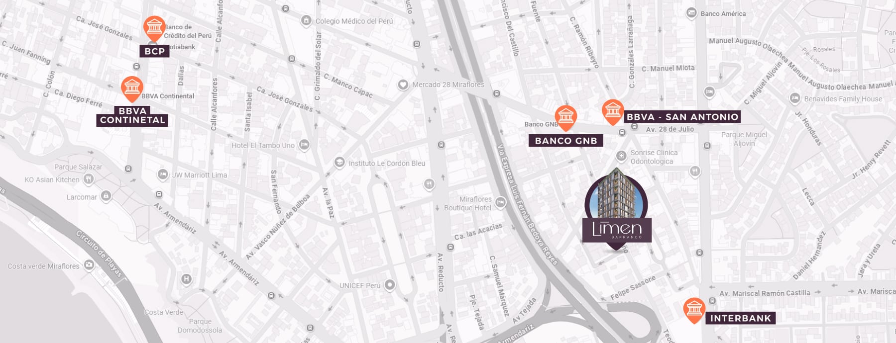 LIMEN es un proyecto con brillo propio. Cuenta con una ubicación privilegiada en Barranco, cerca de todo lo que necesitas, y a pocos pasos de Miraflores.
